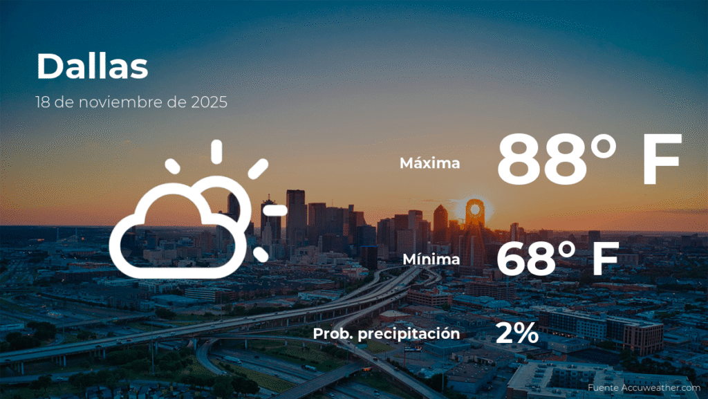 This Tuesday, November 18, the temperature in Dallas, Texasincrease to a maximum of 88 degrees Fahrenheit (31ºC). The chance of